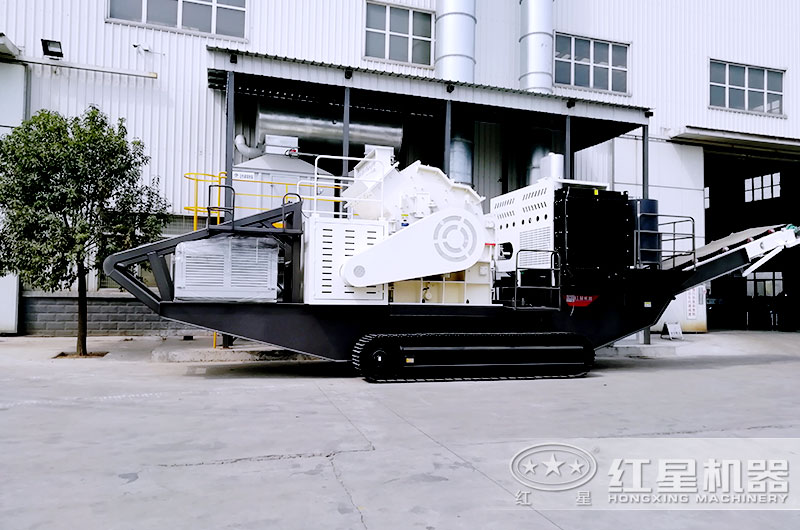 移動履帶碎石機(jī)已經(jīng)開到破碎現(xiàn)場